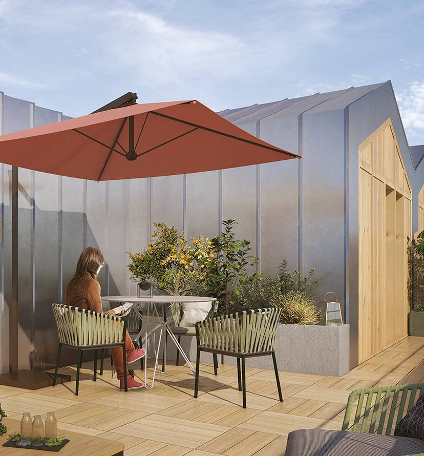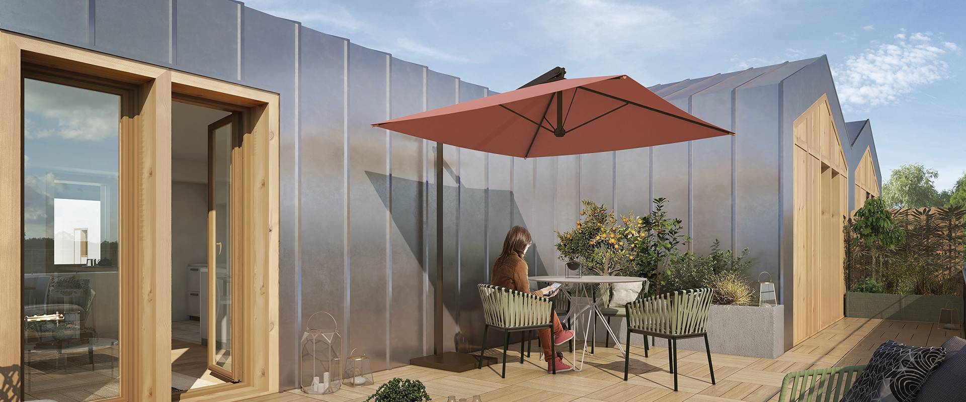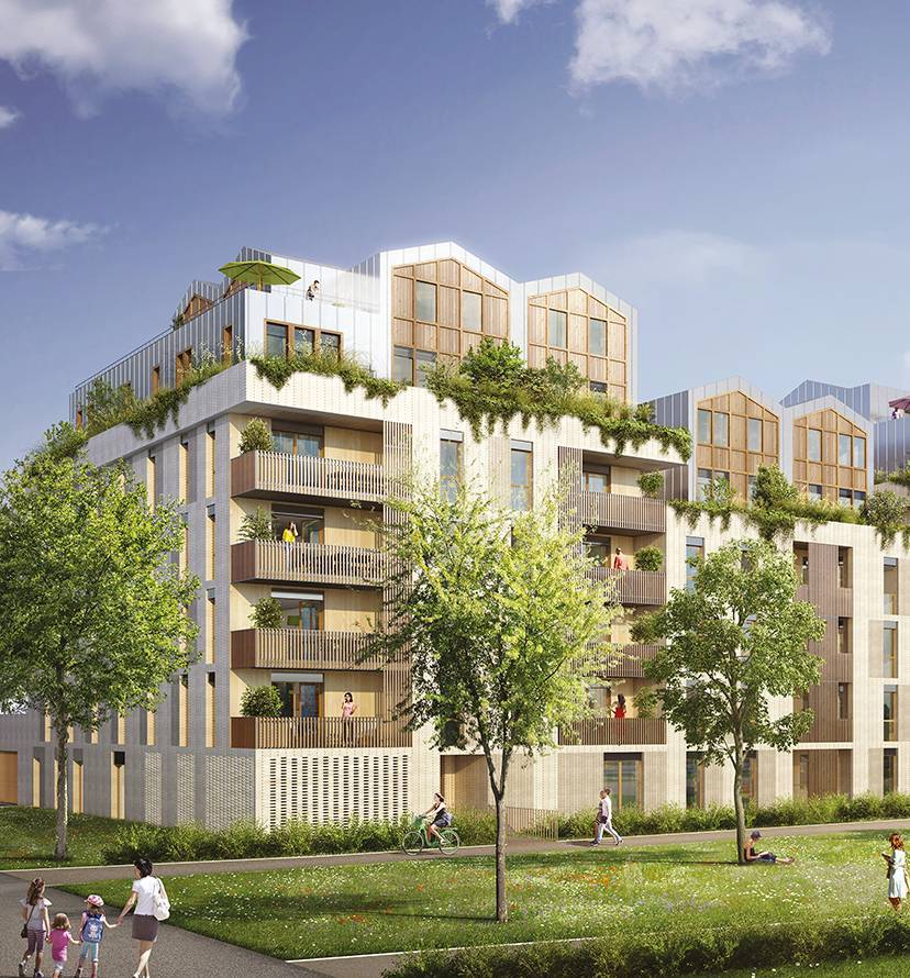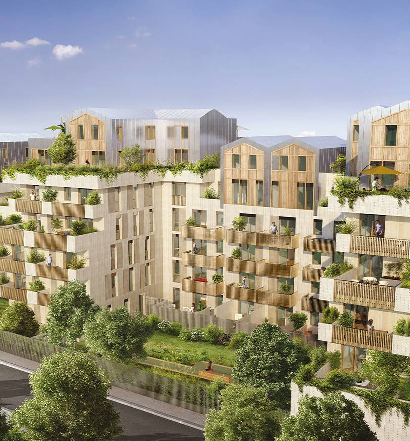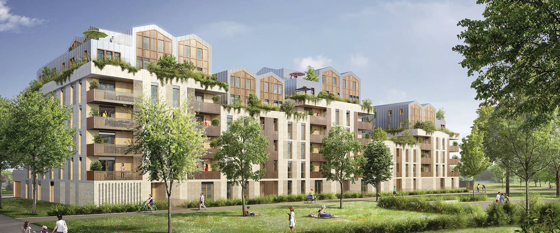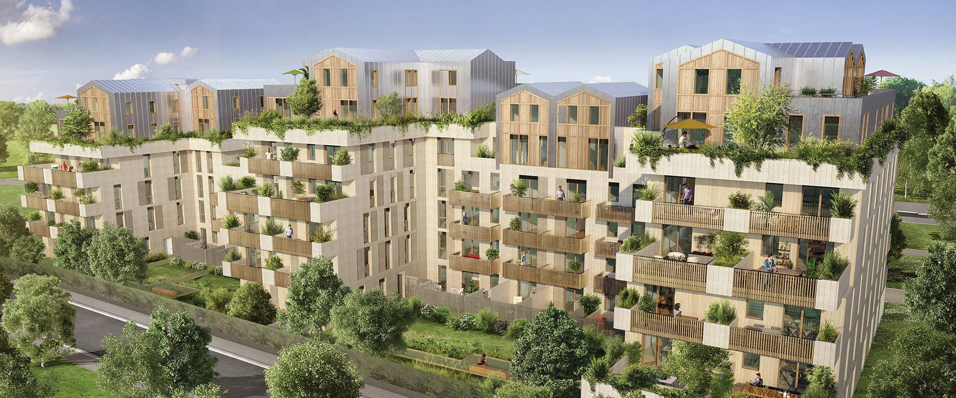 La résidence un Jardin en Ville dispose d'une conception unique en matière d’écologie et de développement durable. Le bois s’impose ici comme un matériau incontournable depuis les façades jusqu’aux parquets des intérieurs en passant par le revêtement des terrasses. Sur les toits végétalisés, de superbes maisons familiales sont installées. Tous les logements allient une luminosité et une générosité des volumes sans égale. Le confort de vie ne serait pas complet sans les superbes vues sur les espaces naturels et le mail piéton depuis les appartements.