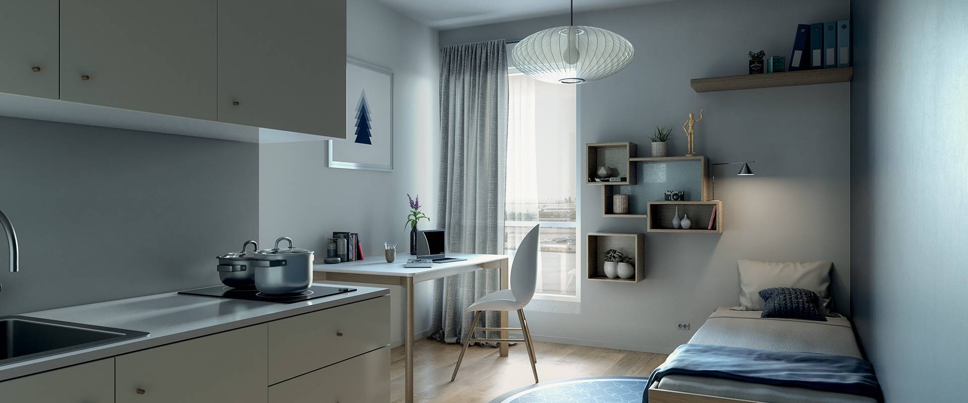 All Suites Appart Study est une résidence dédiée aux étudiants en quête d’un lieu de vie pratique et confortable. La résidence prend place sur le site de la presqu’île Frissard, un quartier emblématique du Havre qui a connu une profonde transformation ces dernières années. Le secteur accueille à la fois des grandes écoles, un centre des congrès ainsi que des commerces, services et équipements culturels qui garantissent un quotidien agréable. Depuis la résidence, une passerelle connecte les Docks à la gare SNCF et au tramway 1 en seulement 5 minutes à pied.