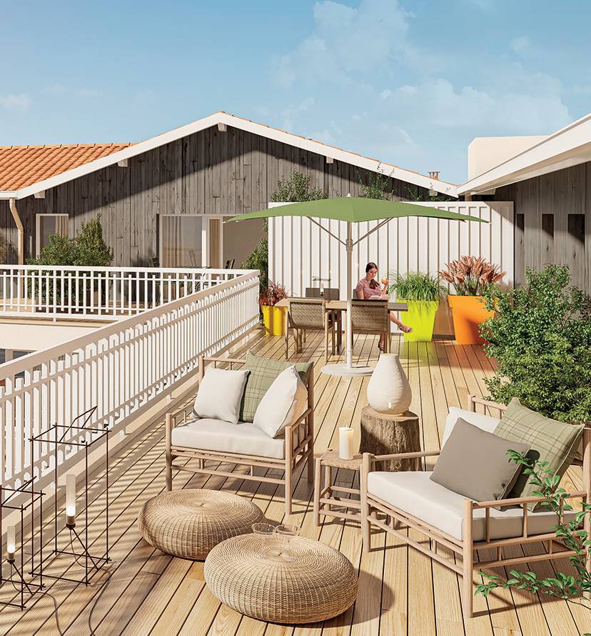 La résidence Le Patio du Lac est installée à proximité du centre-ville et du lac de Biscarrosse. Elle dispose d’une architecture landaise typique s’intégrant parfaitement dans le quartier. Du T2 au T4, tous les appartements sont dotés de superbes balcons, de loggias ou de terrasses. Grâce à ces équipements, vous profitez d’une luminosité de tous les instants dans votre logement. Les intérieurs à la fois chaleureux et fonctionnels vous apporteront un confort et un bien-être permanent. Tous les appartements sont également accompagnés de places de stationnement.