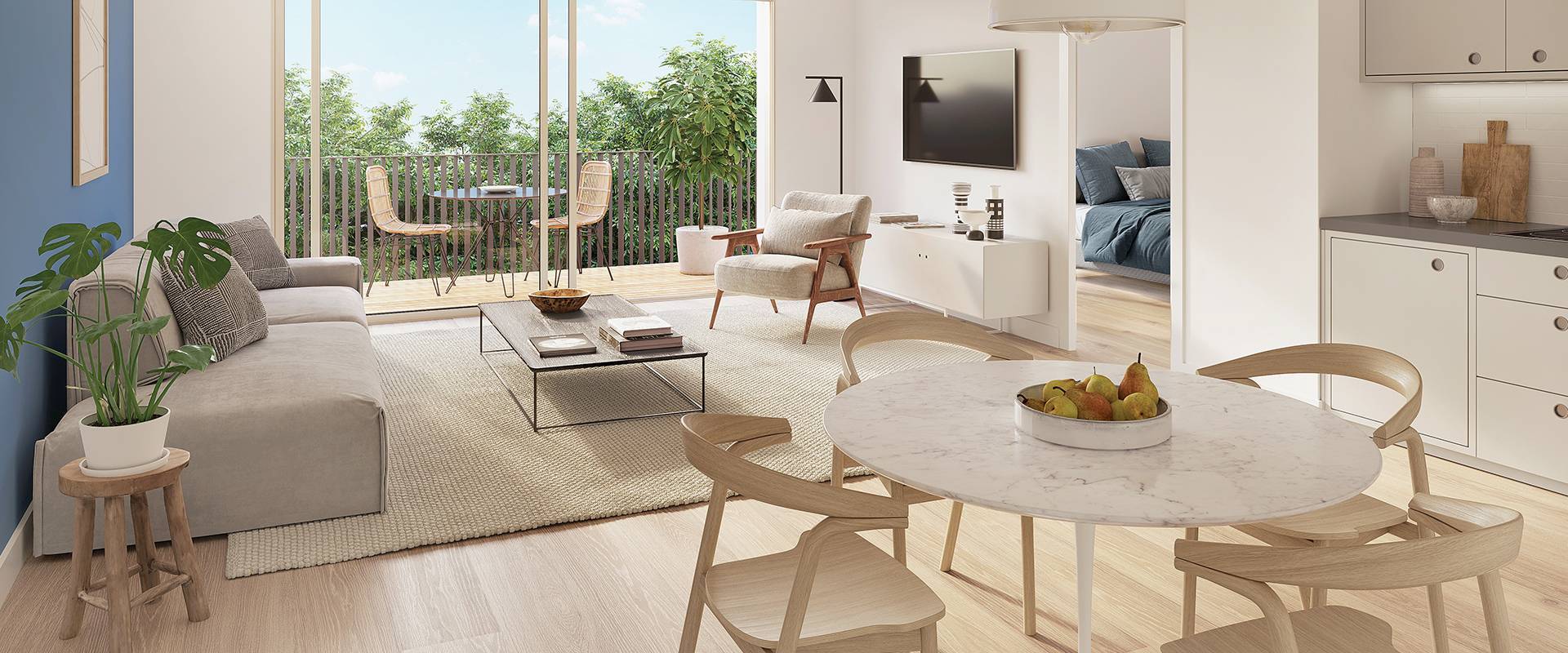 Située dans un environnement à la fois résidentiel et boisé, la résidence Les Jardins de Miville propose un cadre de vie agréable et paisible. La résidence se compose de trois bâtiments à l’architecture inspirée de l’ancien pigeonnier récemment réhabilité et de l’ancien corps de ferme de la Malmaison. Les appartements proposés vont du studio au 5 pièces et disposent tous de jardins privatifs, de loggias, de balcons ou de terrasses. Les intérieurs profitent de volumes vastes et généreux le tout dans une atmosphère cosy.