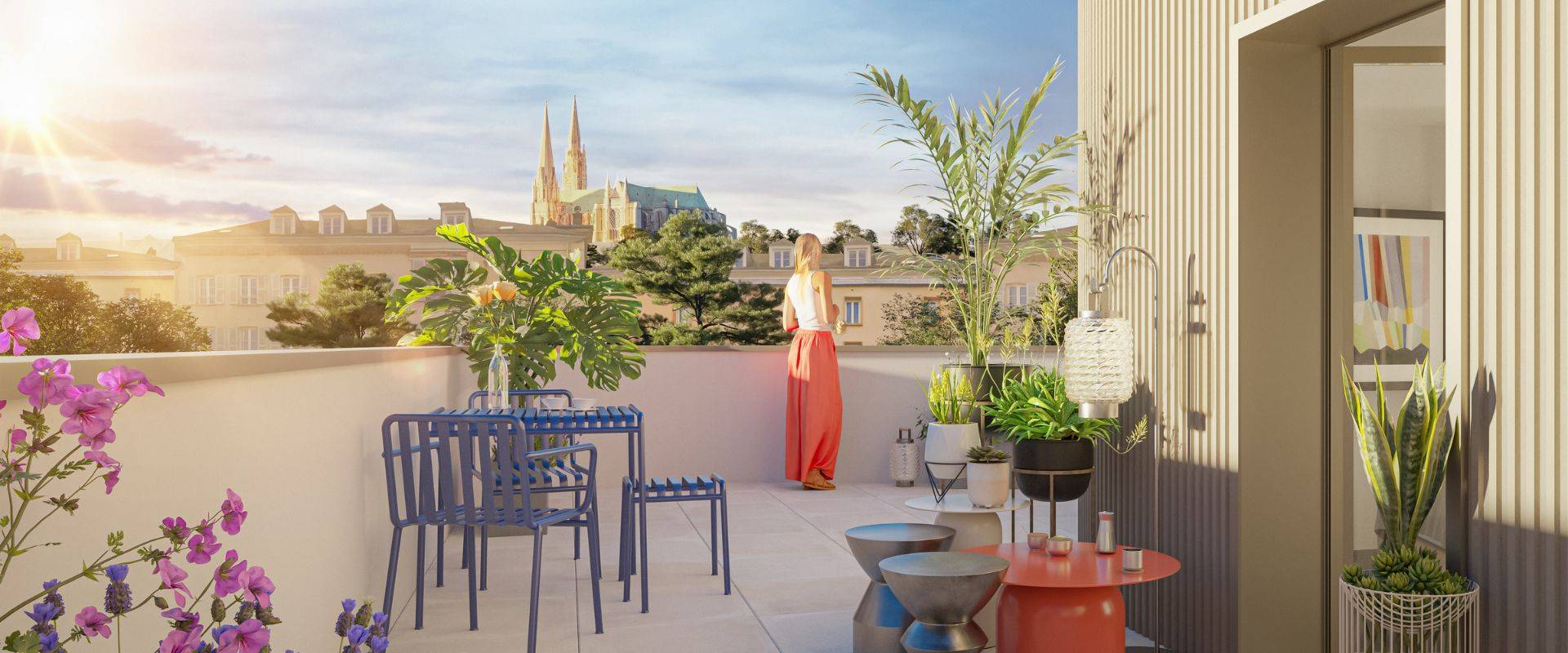 Bienvenue à Chartres, dans notre résidence Le Parvis des Lumières. À seulement 1h15 de Paris en TER, ce programme immobilier vous offre une situation idéale, à côté de la gare et de son nouveau quartier réhabilité. Ce programme immobilier vous propose des appartements neufs dans un quartier animé, à deux pas du centre-ville. Larges terrasses, balcons ou loggias, chaque appartement dispose d’espaces extérieurs, dont certains avec vue sur la cathédrale.