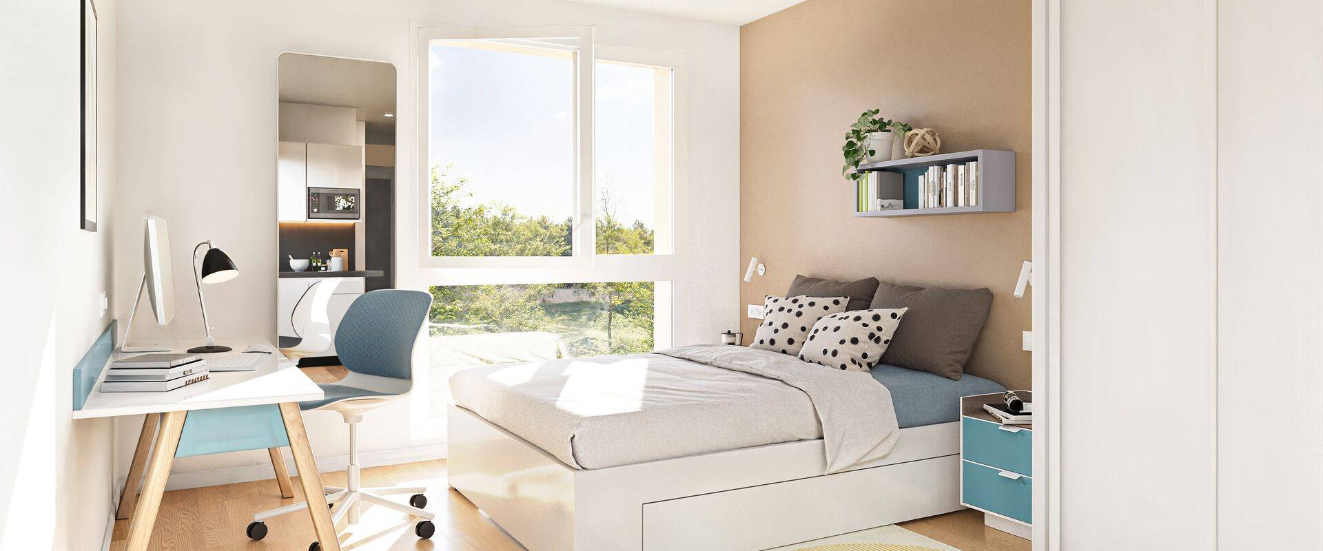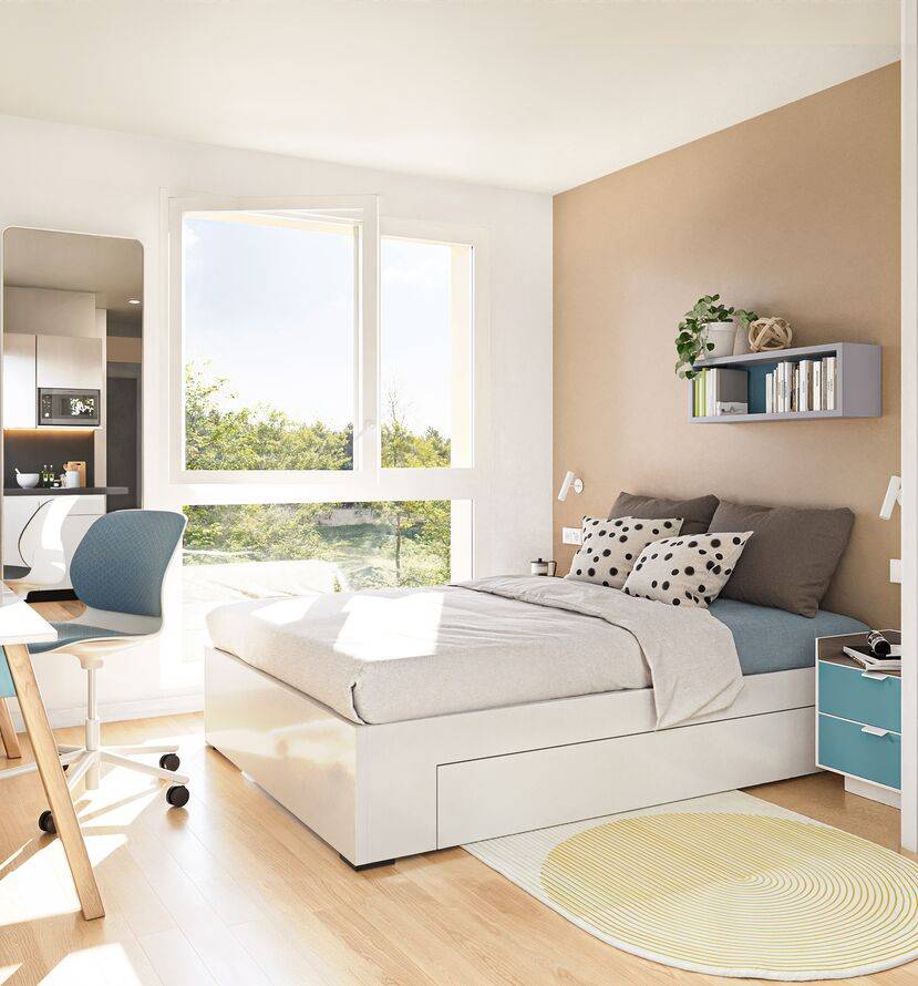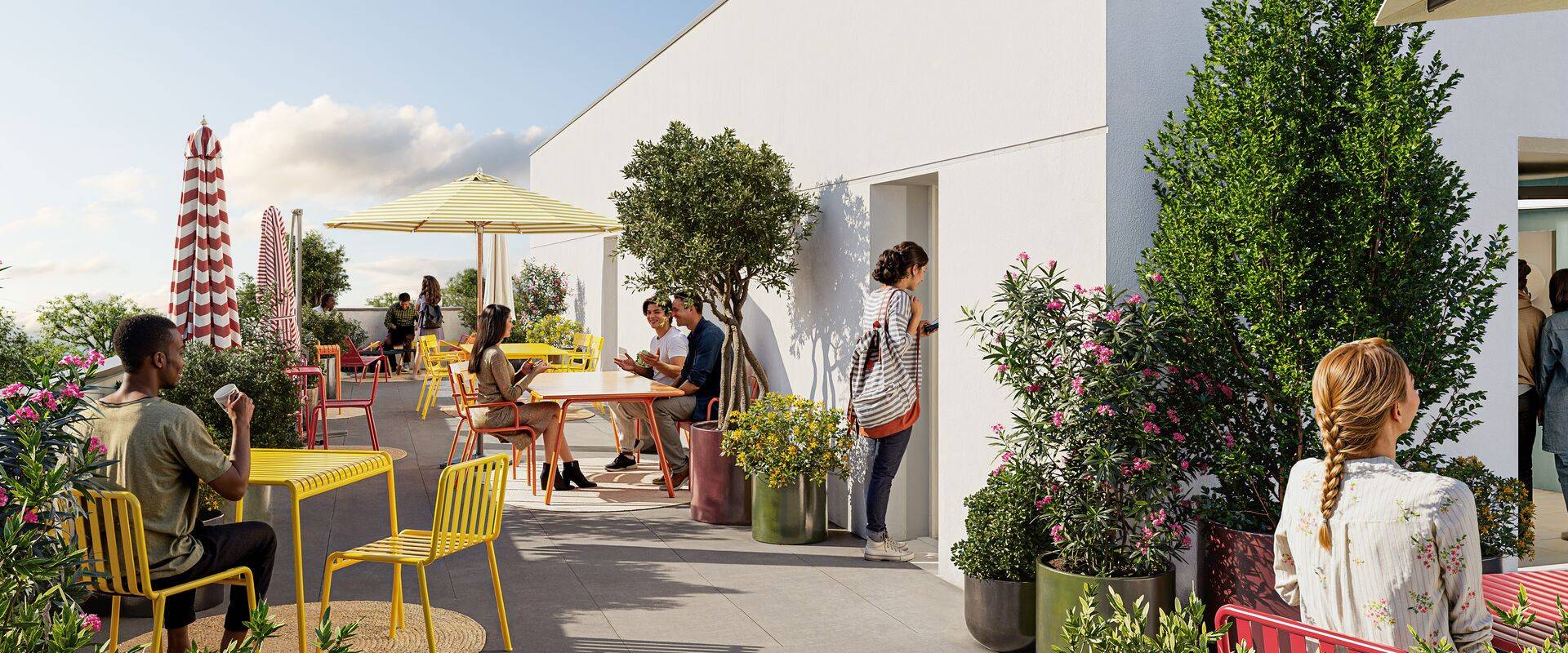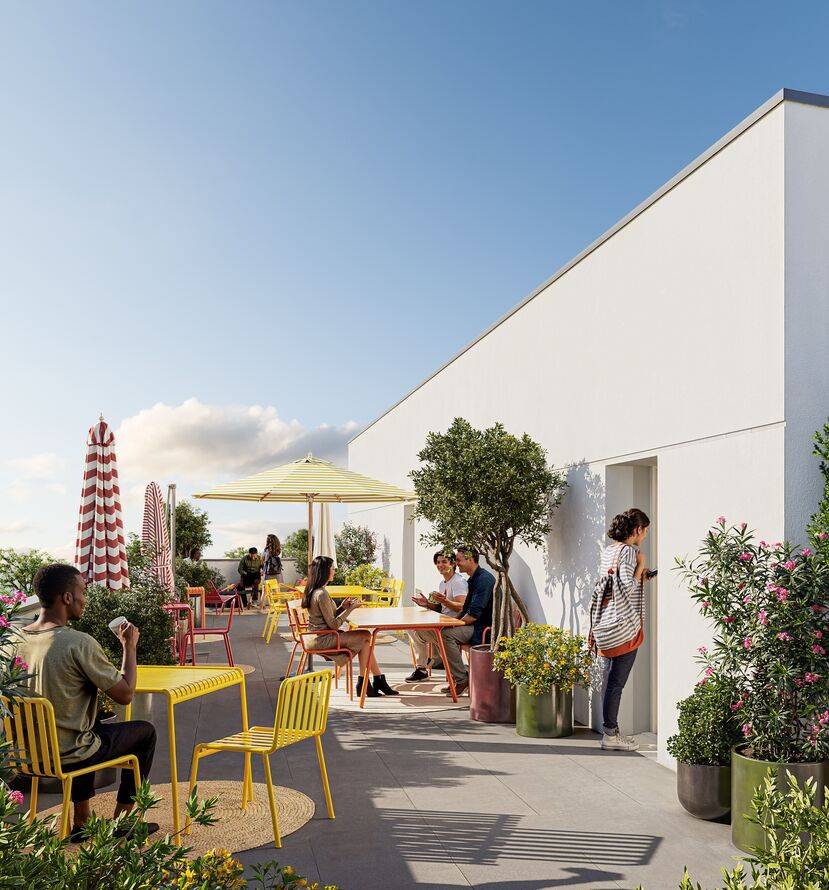 Proposant des appartements neufs du studio au 4 pièces – idéal pour la colocation –, cette résidence neuve offre un cadre de vie accueillant, fonctionnel et moderne aux étudiants. Plusieurs espaces communs contribuent à créer du lien : le jardin partagé à l’arrière de la résidence, la terrasse rooftop de 70 m² au dernier étage et 75 m² au rez-de-chaussée. Une laverie est également disponible au 3e étage.